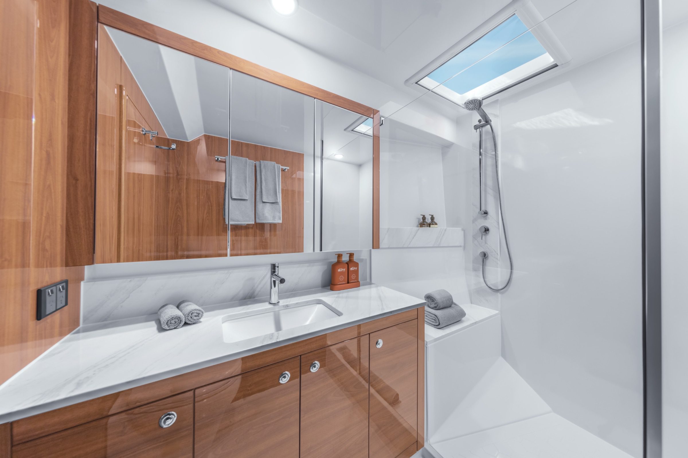“We make a mock-up of the entire boat,” Darren explains. “Structure, layout, ergonomics – we test where things are located, how it feels practically, and how it’s actually going to be used.” This stage includes choosing colours, finishes, drawer lengths, handle heights and appliance positioning, all with the owner experience in mind.