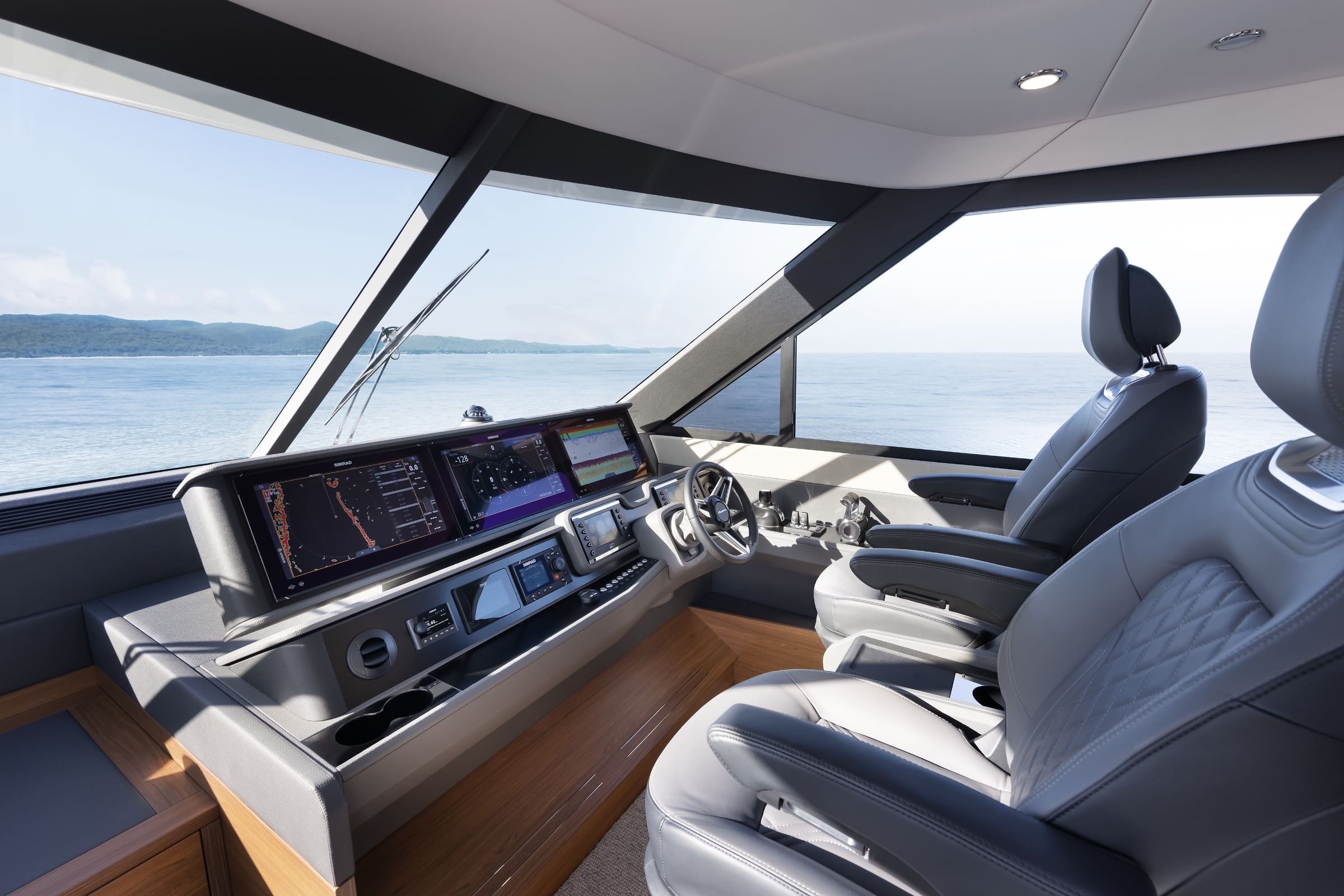 Visibility and protection are inseparable in Maritimo’s design thinking. For a skipper managing long-distance passages, rapidly changing weather systems, or challenging coastlines, situational awareness is paramount. A raised, forward helm enclosed in glass provides the broadest possible view while maintaining comfort and protection from wind, spray, and temperature extremes.