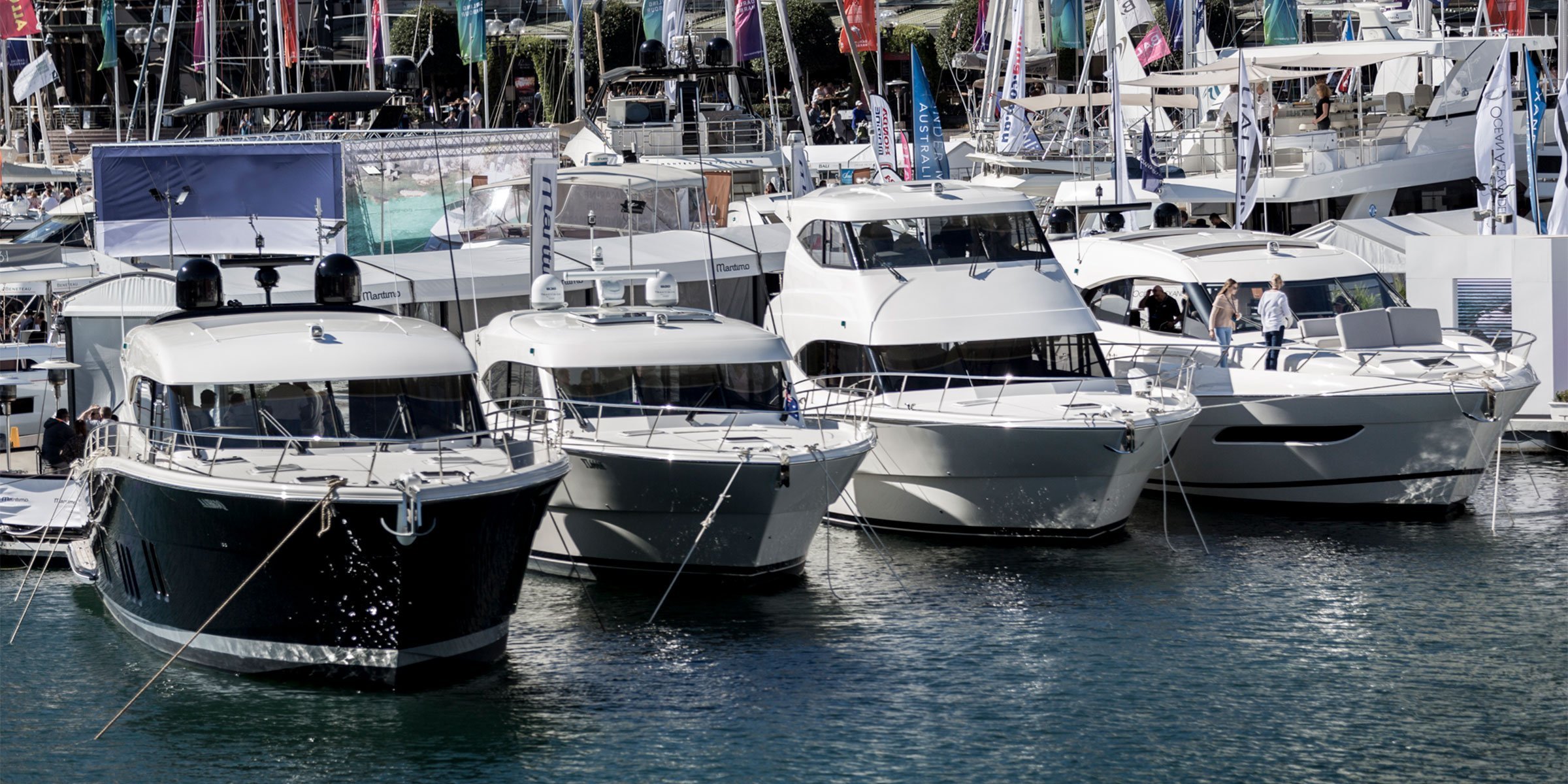 It set the tone for the Maritimo Sydney marina display for the next five days, with a steady stream of sales and enquiry on the new X series and M series Flybridge models. The X50 and its internationally successful sibling the X60 have re-written the status quo for sport yachts internationally with further breakthroughs in design innovation and technology.
