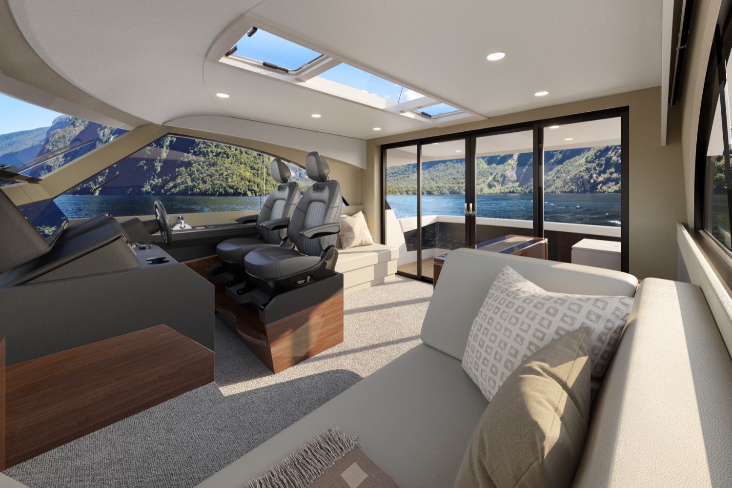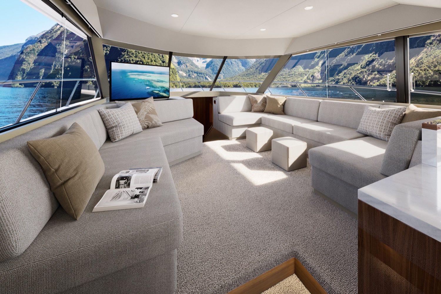 “Just being able to do all those sections through the boat, so people can see the different levels. The fact that we’ve got the cockpit as one level through to the galley, the customer loved that, and then we can show where we’ve been able to reduce the overall height of the boat to get the proportions of the boat lower down, because it is a shorter boat. We showed what we’ve been able to do with steps and to reduce the height of steps on the boat and yet not compromise the headroom throughout the vessel. We’ve maintained the minimum head height of 1.9m, which helps for safety and comfort, but also creates this feeling of openness and volume,” McCabe added.