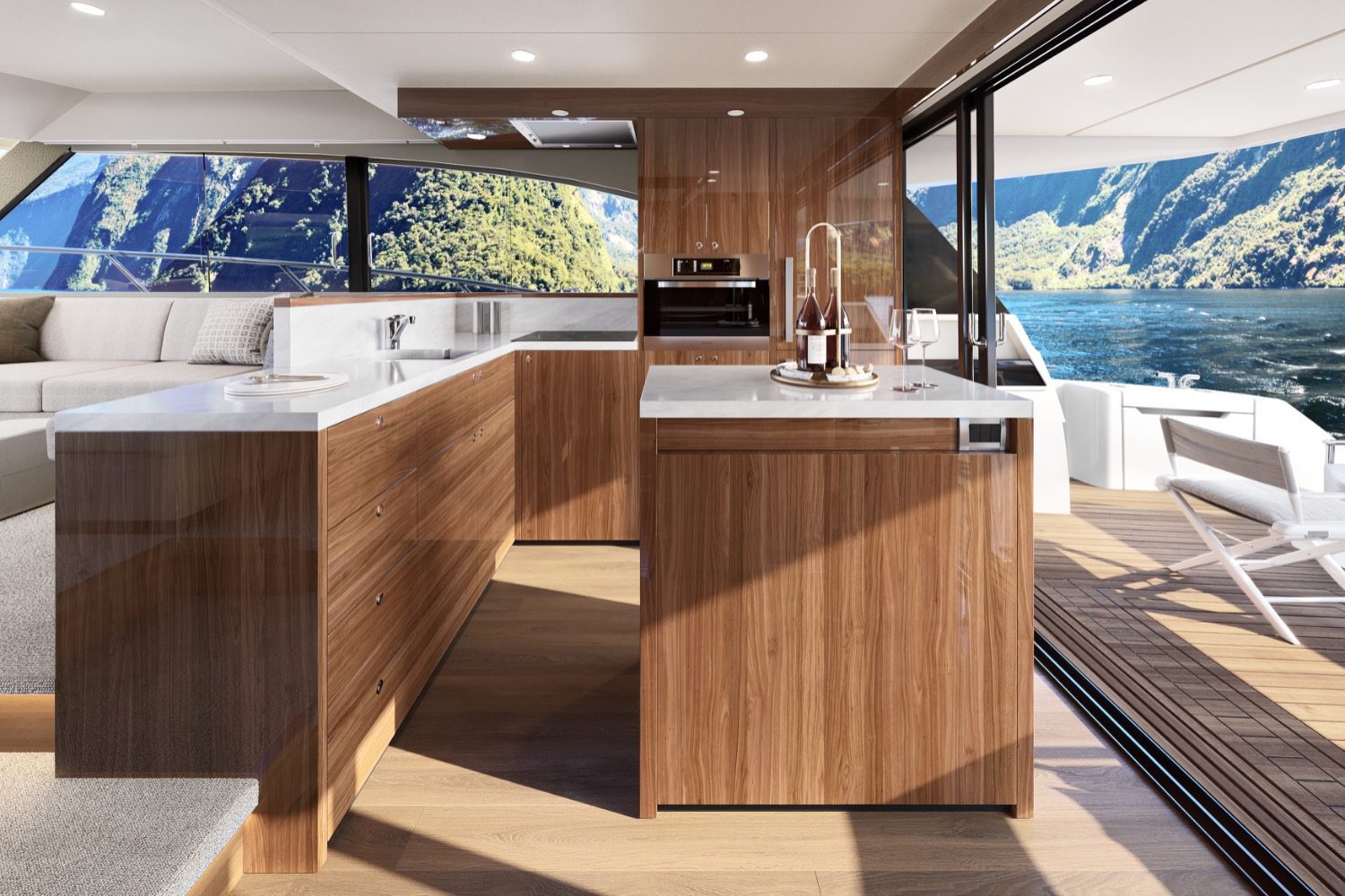 “We’ve now had the ability, as the deck was being built, to fine-tune some of the details around the flow of people traffic. So, as you’re moving through the galley, up the stairs, we’ve tweaked some of the staircases around, we’ve tweaked the lounges around and changed the angle on the lounge just to make the flow better, from the saloon floor level up to the cockpit. These are the things that you don’t see on a computer screen. When you walk on the boat, it allows us to get a feel and get the ergonomics right. It’s all part of the process,” said McCabe