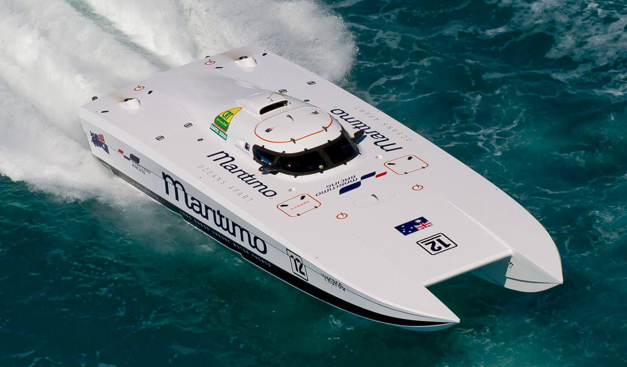 Maritimo Offshore Racing is also heavily involved in the preparation of the Gold Coast Australia XCAT boat that is competing in the World XCAT Series. This race boat is outboard powered and driven by Tom Barry-Cotter.