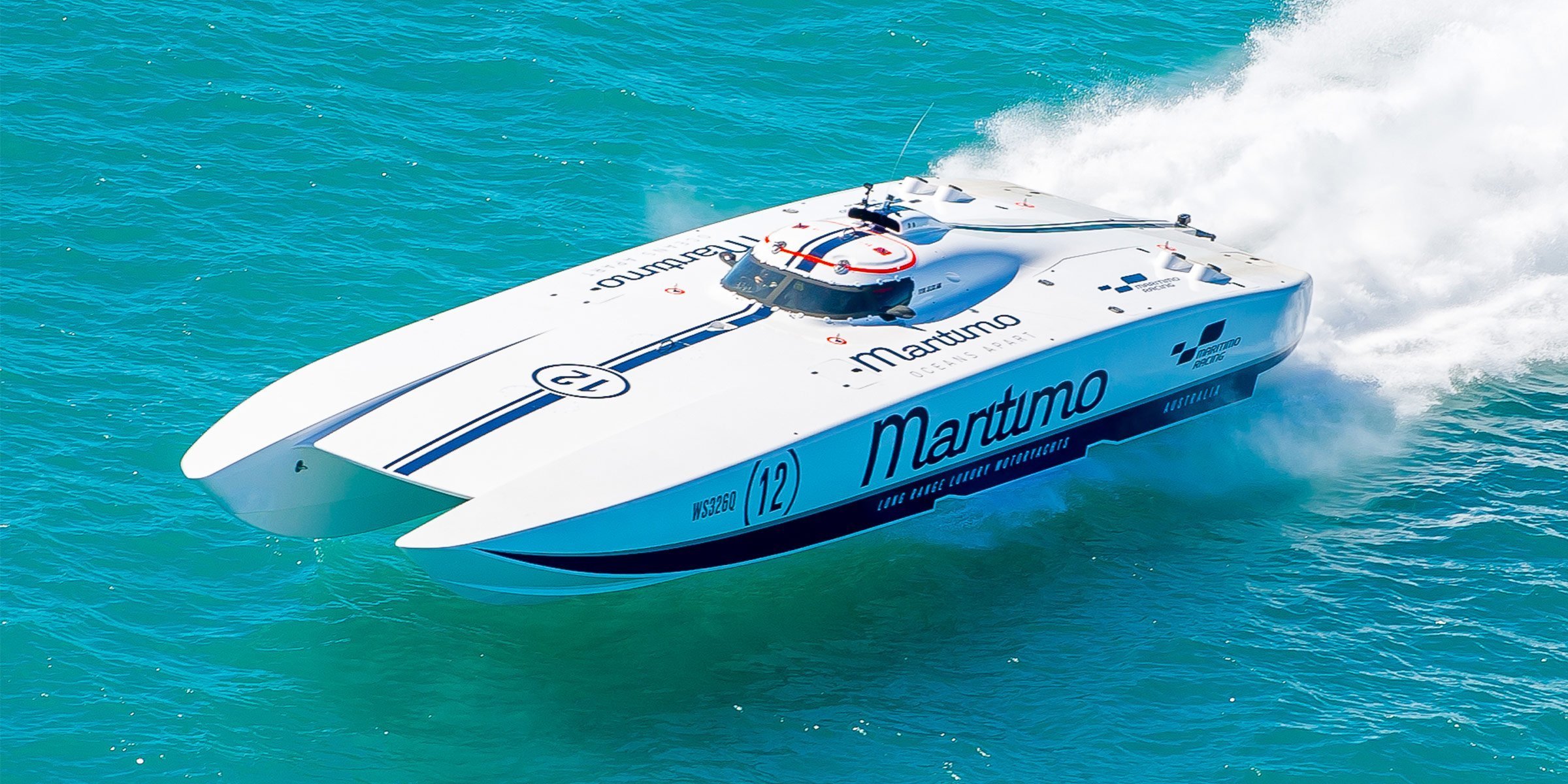 Maritimo’s offshore superboat team is leading the Supercat Extreme Class and running second overall after four of 10 events. Having claimed their 14th Australian Offshore Superboat Championship title last year, Maritimo is determined to repeat that success again this year and is also committed to a two-boat assault on the Key West Super Boat International World Championships (SBI) in the USA this November.