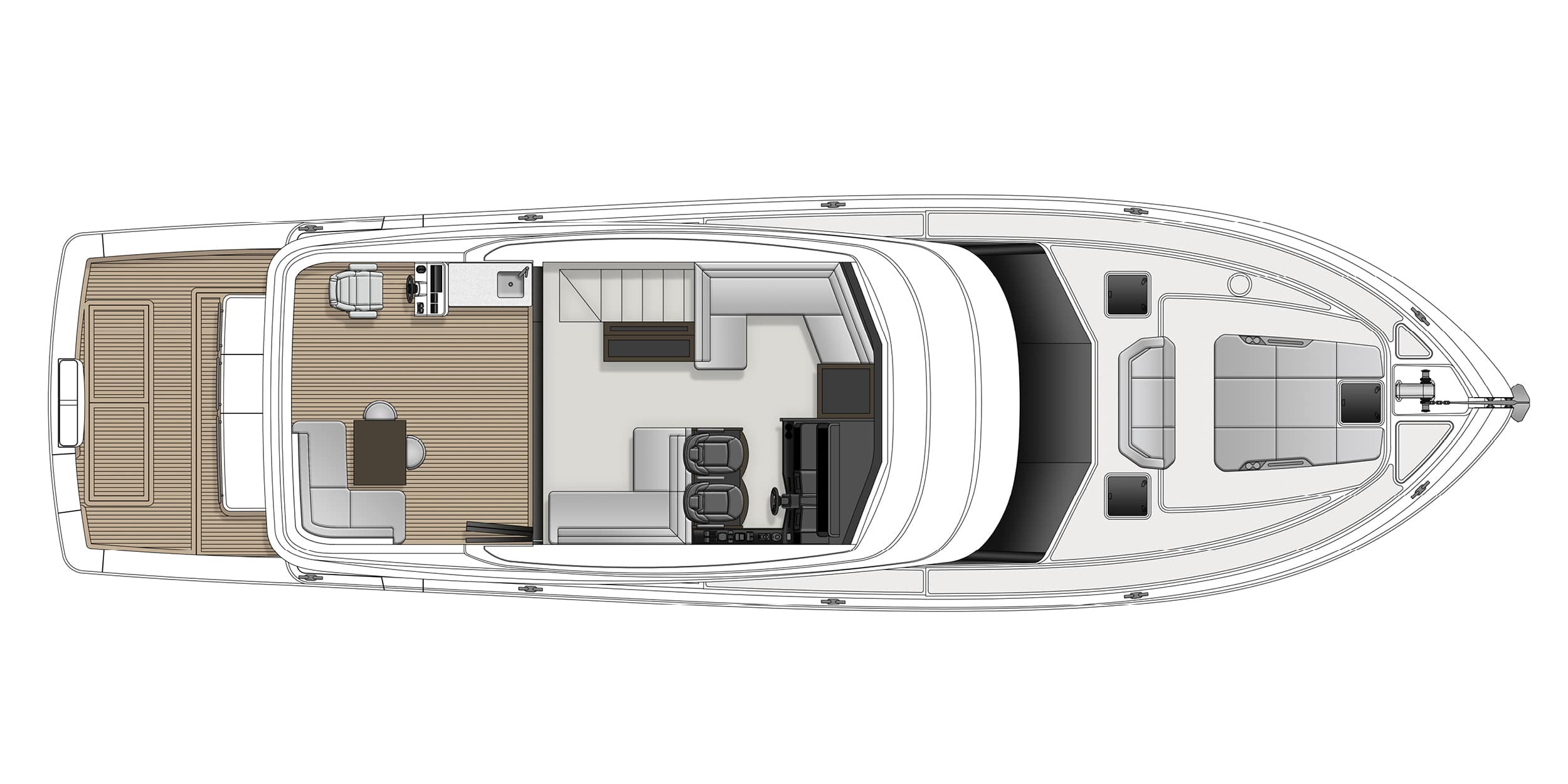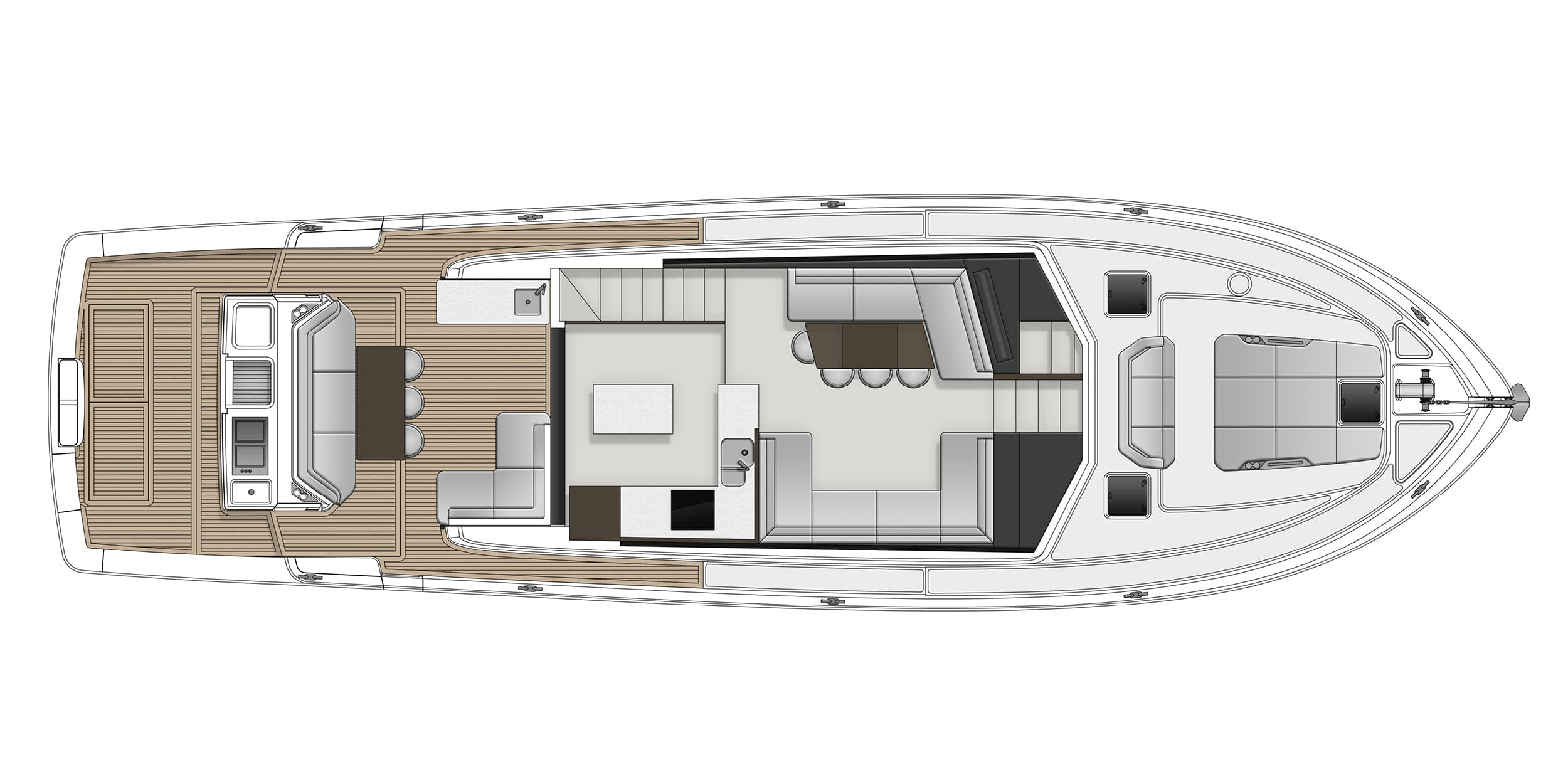 Reimagined adventure deck and lower cockpit space - The new Black Edition enhances the cockpit with several practical and stylish improvements, such as a redesigned, larger transom island separating the main cockpit from the enclosed transom which now incorporates an upgraded lounge and expanded BBQ area.